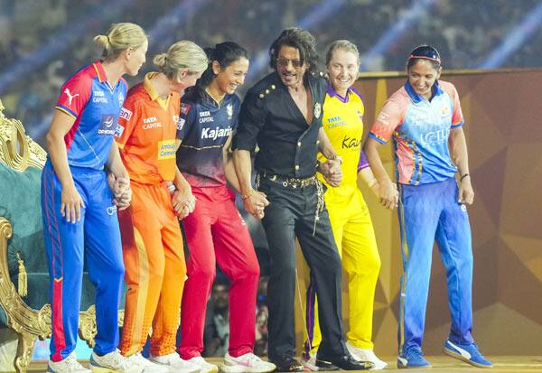 மகளிர் பிரிமியர் லீக் கிரிக்கெட் துவக்க விழாவில் ஐந்து அணி கேப்டன்களுடன் நடனமாடிய பாலிவுட் நடிகர் ஷாருக் கான். இடம்; பெங்களூரு.