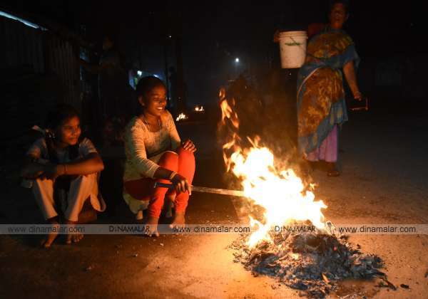 போகி பண்டிகை முன்னிட்டு விழுப்புரத்தில் வீட்டு முன்பு பழைய பொருட்களை எரிய விட்டனர்.