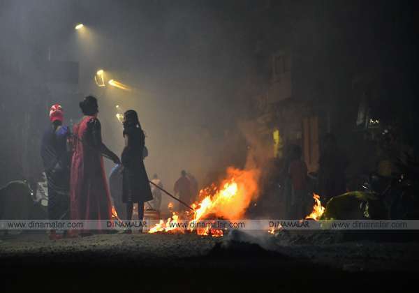 போகிப் பண்டிகை முன்னிட்டு வீடுகளில் உள்ள பழைய பொருட்களை எரிந்தனர்.இடம். புதுச்சேரி முதலியார்பேட்டை.