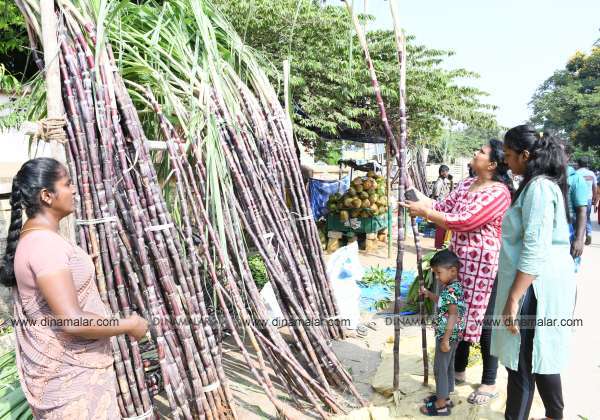 பொங்கலையொட்டி உடுமலை ராஜேந்திரா ரோட்டில் விற்பனைக்கு வைக்கப்பட்டுள்ள கரும்புகள்.