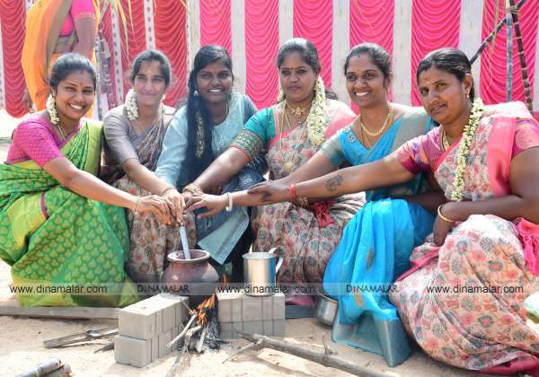 பொங்கல் பண்டிகை ஒட்டி கோவை பிஆர்எஸ் மைதானத்தில் ஆயுதப்படை பெண் போலீசார் பொங்கல் வைத்துக் கொண்டனர்