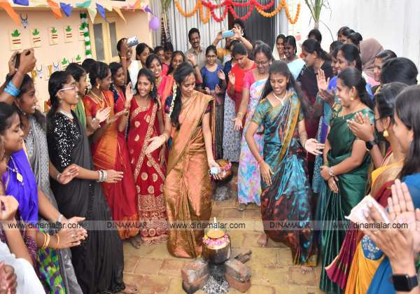 ஆட்டம் ... பாட்டம் .. பொங்கலோ .. பொங்கல்.. கோவை டவுன்ஹாலில் மாணவிகள் சமத்துவ பொங்கல் கொண்டாடி, கும்மி பாட்டிற்கு நடனமாடி பார்வையாளர்களை கவர்ந்தனர்.