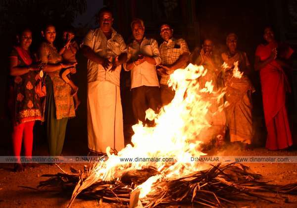 திருப்பூர், பெருமாள் கோவில் வீதியில் போகி பண்டிகை கொண்டாடிய பொதுமக்கள்.