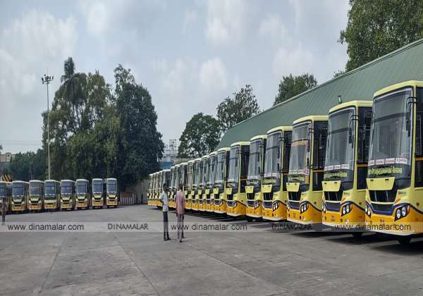 சென்னை பல்லவன் இல்லத்தில் இன்று முதல்வர் கொடியசைத்து துவக்க உள்ள புதிய பேருந்துகள்.