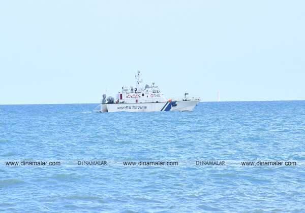 ராமேஸ்வரம் கோயில் அக்னி தீர்த்த கடலில் பிரதமர் மோடி புனித நீராட உள்ளதால் ராமேஸ்வரம் கடலில் இந்திய கடலோர காவல் படை கப்பல் ரோந்து சுற்றி வந்தது.