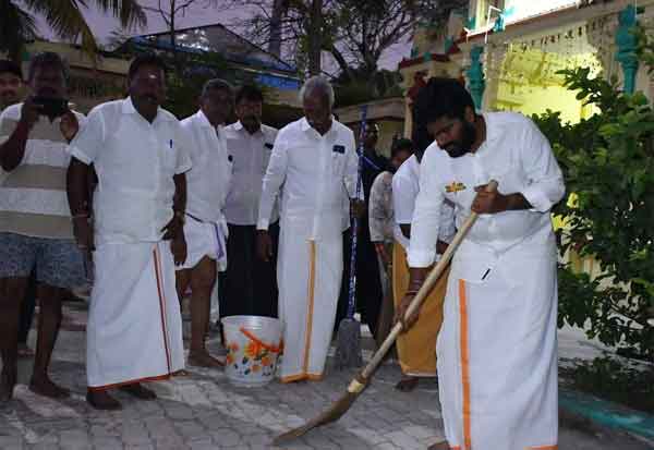 தூய்மை இந்தியா திட்டத்தை வலியுறுத்தி இன்று ராமேஸ்வரத்தில் தமிழக பா.ஜ., தலைவர் அண்ணாமலை தூய்மை பணி செய்தார்.