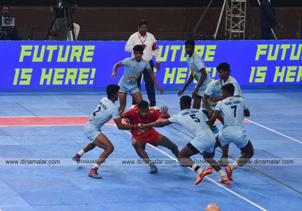 கேலோ இந்தியா கபடி அரையிறுதி போட்டியில் மோதிய தமிழகம் மற்றும் ராஜஸ்தான் அணிகள்.