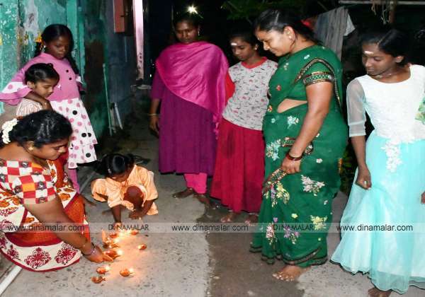 ராமர் கோயில் கும்பாபிஷேகத்தை முன்னிட்டு திண்டுக்கல் மேட்டுப்பட்டி கோவிந்தசாமி நகர் வீடுகளில் விளக்கேற்றி வழிப்பட்டனர்.
