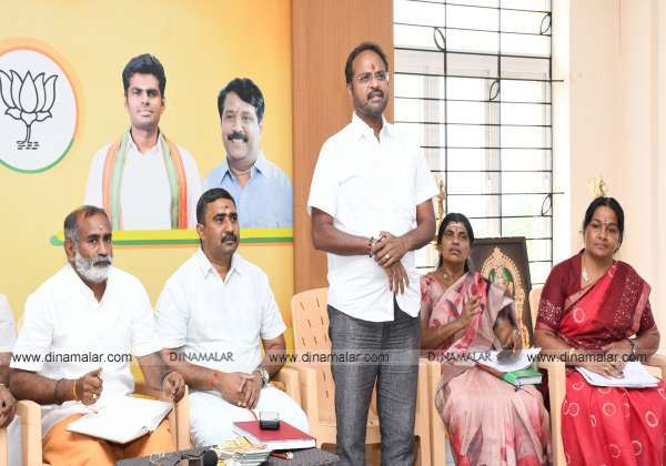 திருப்பூர், மாவட்ட பா.ஜ., அலுவலகத்தில் லோக்சபா தொகுதி பொறுப்பாளர்கள் ஆலோசனை கூட்டம் நடந்தது. அதில், மாநில பொது செயலாளர் முருகானந்தம் பேசினார். (இடமிருந்து) மாநில துணைத் தலைவர் கனகசபாபதி, மாவட்ட தலைவர் செந்தில்வேல், மாநில செயலாளர் மலர்க்கொடி உள்ளிட்டோர்.