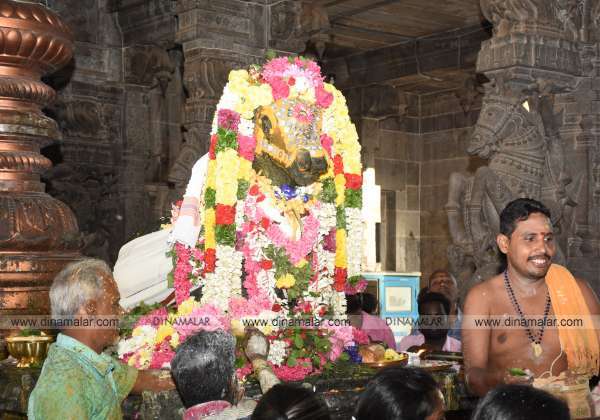 பிரதோஷத்தையொட்டி கடலூர் திருப்பாதிரிப்புலியூர் பாடலிஸ்வரர் கோவிலில் சிறப்பு அலங்காரத்தில் நந்தி பகவான்