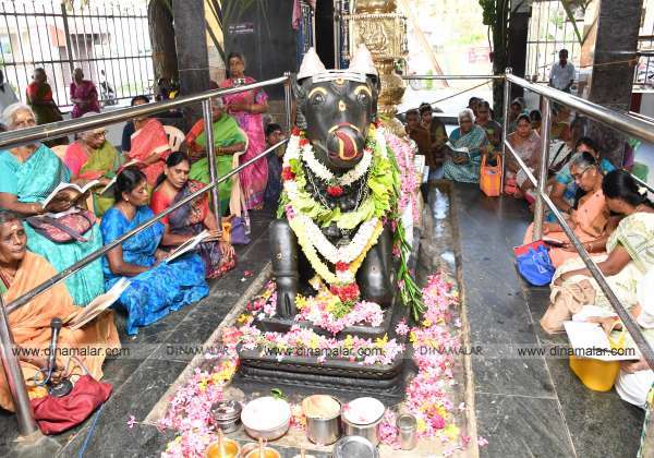 தை மாத பிரதோஷத்தை முன்னிட்டு உடுமலை ரத்தினாம்பிகை உடனுறை ரத்தின லிங்கேஸ்வரர் கோயிலில் சிறப்பு அலங்காரத்தில் நந்திபகவான் அருள்பாலித்தார்.