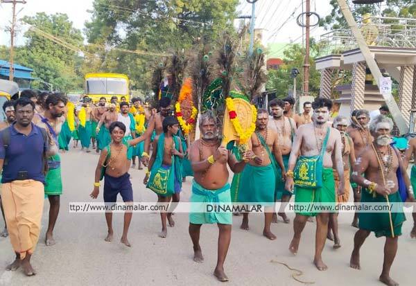 திருச்செந்தூர் சுப்பிரமணிய சுவாமி கோயிலில் தைப்பூச திருவிழா முன்னிட்டு ஏராளமான பக்தர்கள் காவடி எடுத்து பாதயாத்திரையாக வரத் தொடங்கியுள்ளனர்