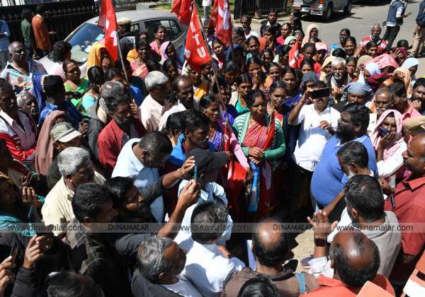 ஊட்டி கலெக்டர் அலுவலகத்திற்கு, தனியார் தேயிலை தோட்ட தொழிலாளர்கள், காத்திருப்பு போராட்டம் நடத்த வந்தனர்.