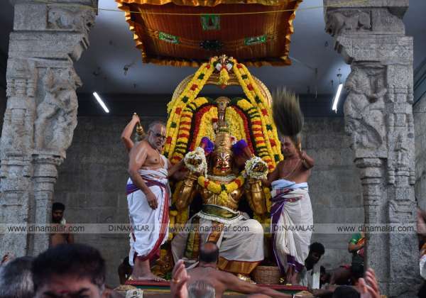 திருவள்ளூர் வீரராகவர் கோவிலில் தை பிரம்மோற்சவத்தை முன்னிட்டு மூன்றாம் நாள் கருட சேவை உற்சவம் நடந்தது. இதில் கருட வாகனத்தில் பக்தர்களுக்கு அருள்பாலித்த வீரராகவர்.