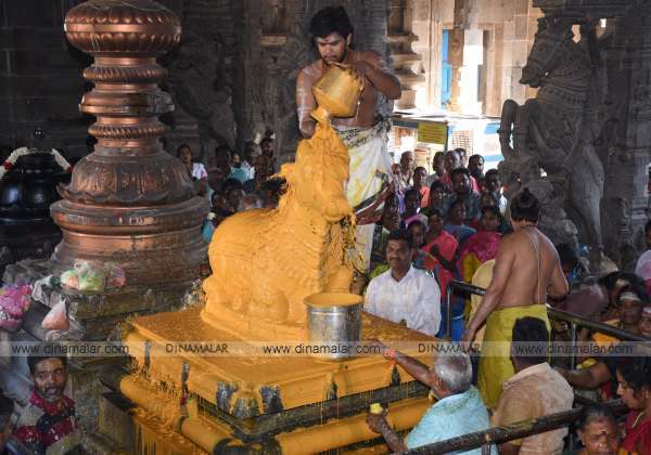 கடலூர் திருப்பாதிரிப்புலியூர் பாடலிஸ்வரர் கோயிலில் உள்ள நந்தி பகவானுக்கு சிறப்பு அபிஷேகம் நடைபெற்றது.