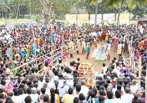 உடுமலை வஞ்சிபுரம் திரௌபதியம்மன் பஞ்சபாண்டவர் திருக்கோயில் திருவிழாவையொட்டி பக்தர்கள் குண்டம் இறங்கினர்.