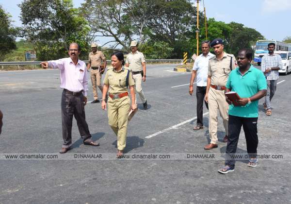 திண்டிவனம் அடுத்த கோனேரி குப்பம் பைபாஸ் சாலையில் கொலை நடந்த இடத்தை டி. ஐ .ஜி., திஷா மிட்டல் ஆய்வு செய்தார் .அருகில் எஸ். பி., தீபக் சிவாச்.