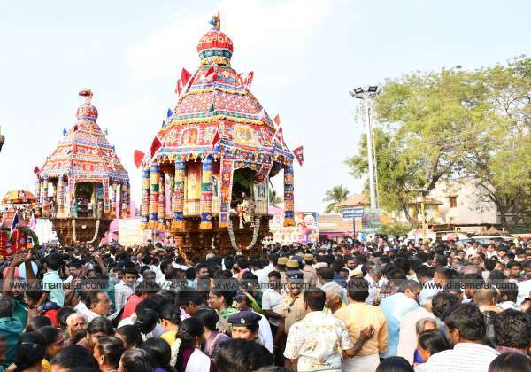 திருமுருகன்பூண்டி, திருமுருகநாதசுவாமி கோவில் மாசி தேர் திருவிழா நடந்தது. தேரை வடம்பிடித்த பக்தர்கள்.