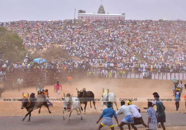 சிவகங்கை மாவட்டம் அரளிப்பாறை பால தண்டாயுதபாணி சுவாமி கோயில் மாசி திருவிழாவை முன்னிட்டு மஞ்சுவிரட்டு நடைபெற்றது.