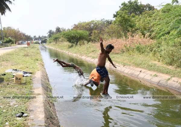 உடுமலை கால்வாய் தண்ணீரில் டைவ் அடிக்கும் இளைஞர்கள்.