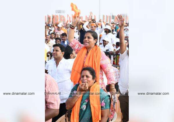 பல்லடத்தில் பிரதமர் பேசும்போது விசில் அடித்து ஆரவாரம் செய்த பெண் தொண்டர்கள்.