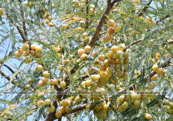 திண்டுக்கல்-தாடிக்கொம்பு ரோடு அருகே காய்துள்ள பெரிய நெல்லிக்காய்.