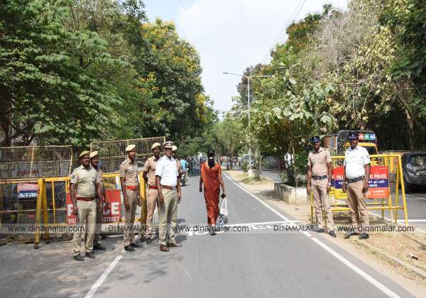 லோக்சபா தேர்தல் முன்னிட்டு விழுப்புரம் கலெக்டர் அலுவலக வளாகத்தில் பாதுகாப்பு பணியில் போலீசார் ஈடுபட்டனர்