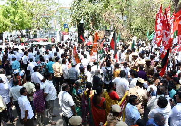 லோக்சபா தேர்தலில் மத்திய சென்னை தொகுதியில் தி.மு.க., சார்பில் தயாநிதி வேட்புமனு தாக்கல் வந்ததால், அப்பகுதியில் அதிகளவில் கூடிய தி.முக மற்றும் கூட்டணி கட்சியினர். இடம் : ஷெனாய் நகர்