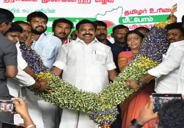 லோக்சபா தேர்தலில் அ.தி.மு.க., வின் தென் சென்னை வேட்பாளர் ஜெயவர்தனை ஆதரித்து பிரச்சாரத்தில் ஈடுபட்ட அ.தி.மு.க., பொதுச்செயலாளர் பழனிச்சாமிக்கு தொண்டர்கள் சார்பில் சாக்லேட் மாலை அணிவிக்கப்பட்டது.இடம்: எம்.ஜி.ஆர்.நகர்.