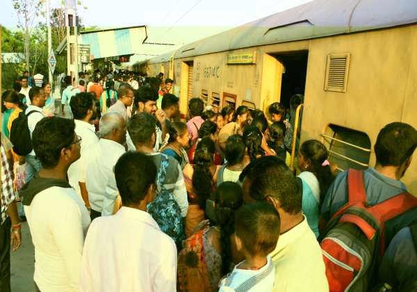 லோக்சபா தேர்தலில் ஓட்டளிக்க வந்தவர்கள் மீண்டும் சென்னை செல்ல ரயிலில் ஏறும் பயணிகள் கூட்டம்.இடம். உடுமலை ரயில்வே ஸ்டேஷன்.