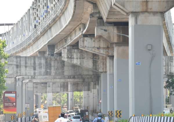 சென்னை, மெட்ரோ ரயில் தூண்களில் வரையப்பட்ட ஓவியங்கள் அழிக்கப்பட்டுள்ளன. இடம்: ஆலந்தூர்.