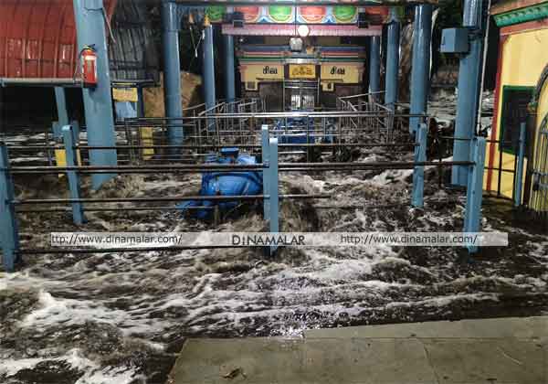 மேற்கு தொடர்ச்சி மலைப்பகுதிகளில் கன மழை பெய்து வருவதால், காட்டாறுகளில் வெள்ளப்பெருக்கு ஏற்பட்டுள்ளது. இதனால், கோவை மாவட்டம் திருமூர்த்தி மலை அமணலிங்கேஸ்வரர் கோவிலை வெள்ள நீர் சூழ்ந்துள்ளது.