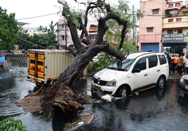 கோவை லாலி ரோட்டில் மரம் விழுந்து கார் சேதமடைந்தது.