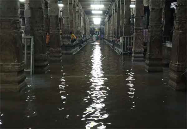 கரூரில் இடைவிடாமல் பெய்த கனமழையால் கல்யாண பசுபதீஸ்வரர் கோயிலுக்குள் மழை நீர் புகுந்துள்ளது.