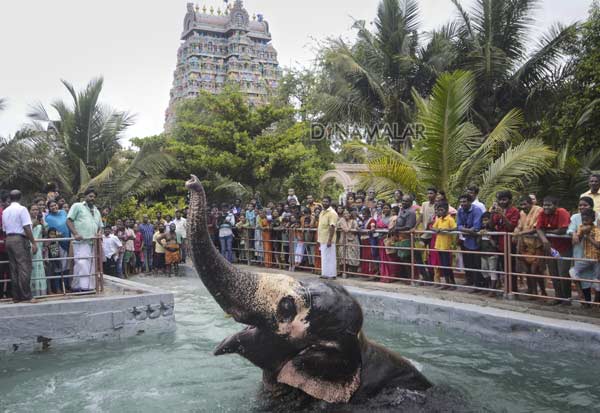 திருச்சி ஜம்புகேஸ்வரர் அகிலாந்தீஸ்வரி கோயிலில் அகிலா என்ற யானை தனது 22வது பிறந்த நாளை கொண்டாடுகிறது.