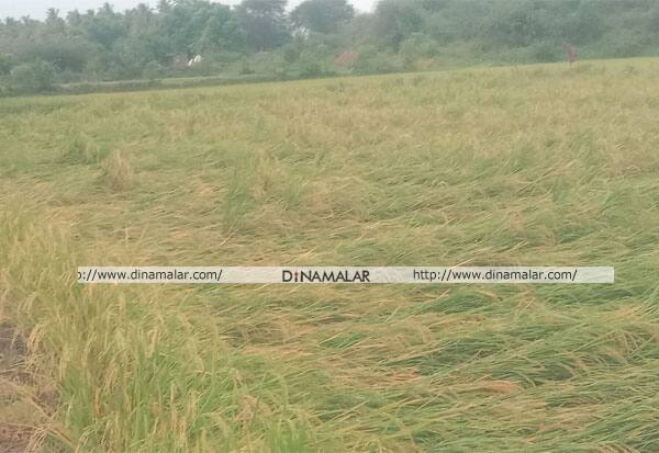 மதுரை வாடிப்பட்டி தனிச்சியம் செம்புகுடிப்பட்டியில் , சூறாவளி காற்றால் நெல் வயல் முற்றிலும் சேதமடைந்தது.