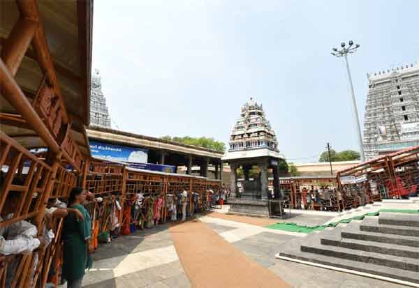 திருவண்ணாமலை அருணாசலேஸ்வரர் கோயிலில் சுவாமி தரிசனம் செய்ய நீண்ட வரிசையில் காத்திருந்த ஏராளமான பக்தர்கள்.