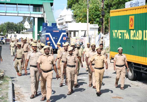 பொள்ளாச்சியில் தி.மு.க., மற்றும் பா.ஜ.க., வினர் டிரம்ஸ் வாசித்ததையடுத்து போலீசார் குவிந்தனர்.