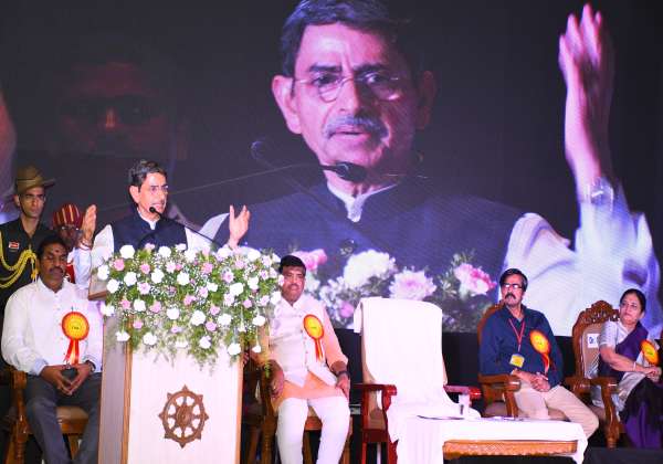 புதிய பாரதத்திற்கான கல்வி சீர்திருத்தங்கள் என்ற தலைப்பில் தேசிய அளவிலான கருத்தரங்கு கோவை ரேஸ்கோர்ஸ் தாஜ் விவாண்டா ஓட்டலில் துவங்கியது. இதில் தமிழக கவர்னர் ரவி பேசினார். அருகில் (இடமிருந்து) தமிழ்நாடு உயர்கல்வி ஆசியர்கள் சங்க தலைவர் பாஸ்கர், அகில பாரதிய ராஷ்ட்ரிய சாக்ஷிக் மஹாசங் செயலாளர் லட்சுமண், யு.ஜி.சி., செயலாளர் மணிஸ் ஜோஷி, கொங்குநாடு கலை அறிவியல் கல்லூரி செயலாளர் வாசுகி உள்ளிட்டோர்.