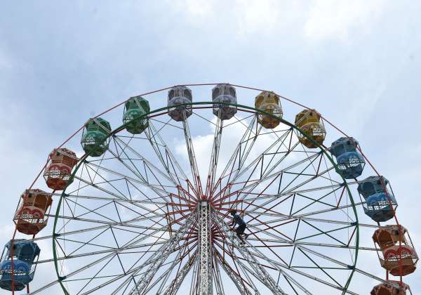 சென்னை ஓ.எம்.ஆர் அருகே உள்ள ஒய்.எம்.சி.ஏ மைதானத்தில் நடைபெற உள்ள பொருட்காட்சி நிகழ்ச்சிக்கு ராட்சத ராட்டினத்தை தயார் செய்யும் பணியில் ஈடுபட்டுள்ள ஊழியர்கள்.இடம் : பெருங்குடி.