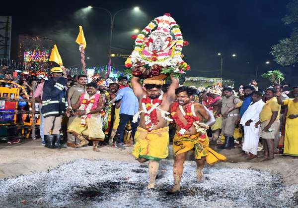 அரும்பாக்கம் பாஞ்சாலி அம்மன் கோயிலில், தீ மிதி திருவிழாவில் பங்கேற்று நேர்த்திக்கடன் செலுத்திய பக்தர்கள்
