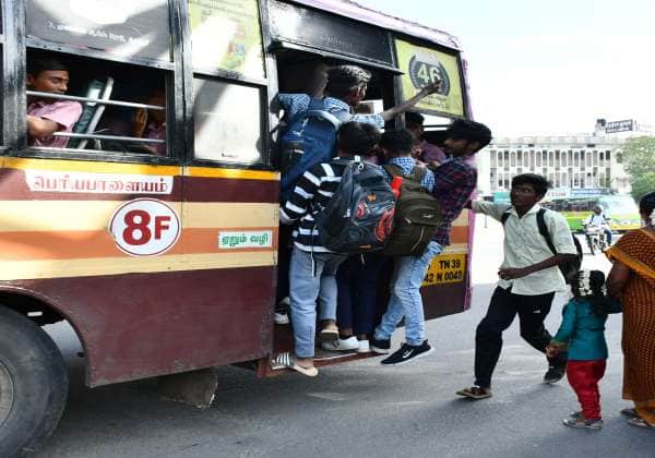 திருப்பூர், ஊத்துக்குளி பஸ் படிக்கட்டில் தொங்கிபடி செல்லும் மாணவர்கள்.
