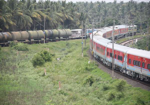 ஒரே நேரத்தில் கூட்ஸ் ரயிலும், பயணிகள் ரயிலும் சென்ற இடம்: கோவை, நஞ்சுண்டாபுரம் ரோடு.