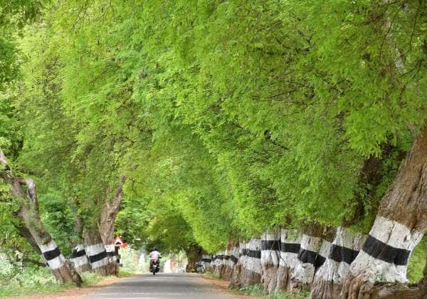 விருதுநகர் மாவட்டம் ராஜபாளையம் அருகே தேவதானம் சாஸ்தா கோயில் செல்லும் வழியில் பசுமையாக காட்சியளிக்கும் மரங்கள்.