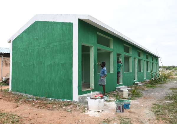 புதுச்சேரி தேங்காய் திட்டு துறைமுகத்தில் வெளி மாநில மீனவர்கள் தங்குவதற்காக 24 அறைகள் கொண்ட கட்டிடம் கட்டப்பட்டு வர்ணம் பூசம் பணி நடந்து வருகிறது.