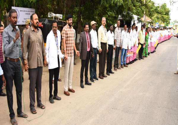 கடலூர் உலக ரத்த கொடையாளர்கள் தினத்தை முன்னிட்டு கலெக்டர் அருண் தம்புராஜ் தலைமையில் மனித சங்கிலி நடந்தது.