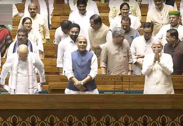 பார்லிமென்ட் கூட்டத்தொடரில் பங்கேற்ற பிரதமர் மோடி, மத்திய அமைச்சர்கள் ராஜ்நாத் சிங், அமித்ஷா உள்ளிட்டோர்.