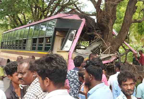 திருப்பத்தூர் மாவட்டம் ஜோலார்பேட்டையில், அரசு டவுன் பஸ் மரத்தில் மோதியதில், பயணிகளுக்கு லேசான காயம் ஏற்பட்டது.