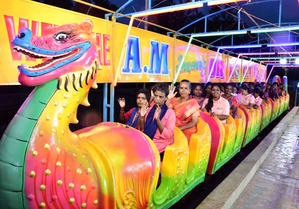கோவை அரசு பொருட்காட்சியில் ஆதரவற்ற முதியோர்கள் மற்றும் குழந்தைகள் ஆகியோர் இலவசமாக பொருட்காட்சியை சுற்றி காண்பித்து கேளிக்கை பகுதியில் விளையாட வைத்தனர்.