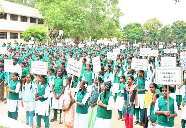 திருவண்ணாமலை டேனிஷ் மிஷன் மேல்நிலைப்பள்ளியில் ஆசிரியர்கள் மற்றும் மாணவர்கள், போதைப் பொருள் விழிப்புணர்வு உறுதிமொழி எடுத்துக்கொண்டனர்.